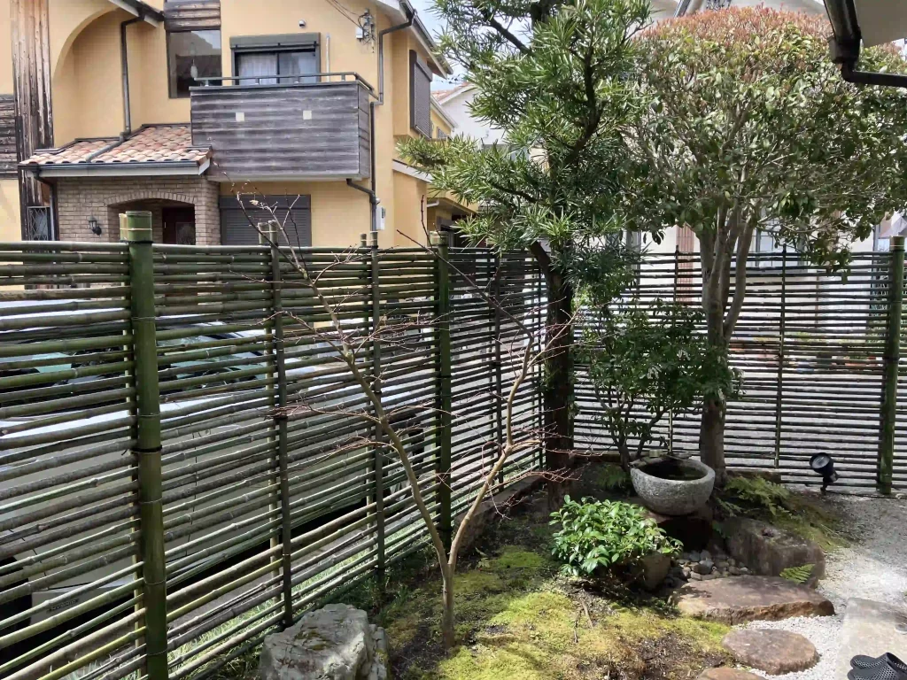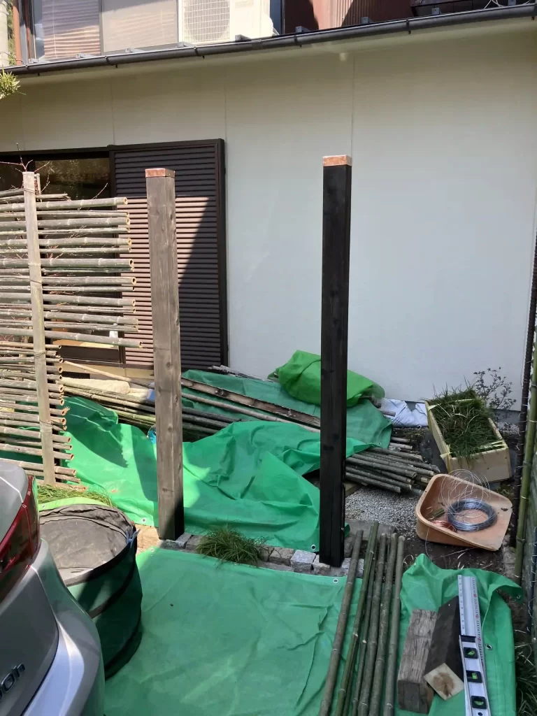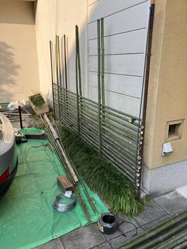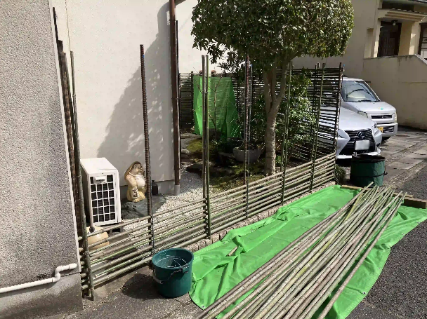 竹垣が所々朽ちてきたので、やりかえることになりました。